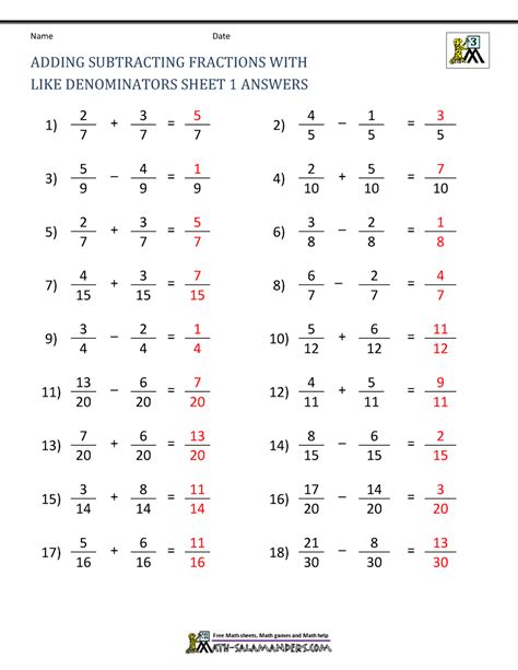 Web start estimate to add and subtract fractions with different denominators get 3 of 4 questions to level up! 2/6 + 3/6 = 5/6) 3rd through 5th grades view pdf variety. Web adding and subtracting fractions worksheets come with answer keys that help students compare their solutions and make corrections accordingly.