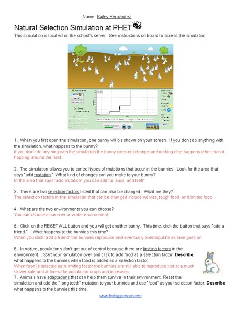 Answer Key Natural Selection Simulation At Phet Worksheet Answers