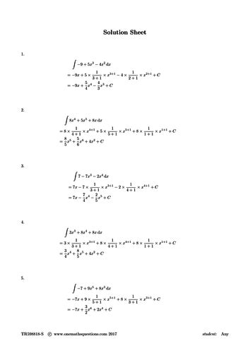 Simple Integration Worksheet / Math Exercises Math Problems Indefinite from vernieloves.blogspot.com