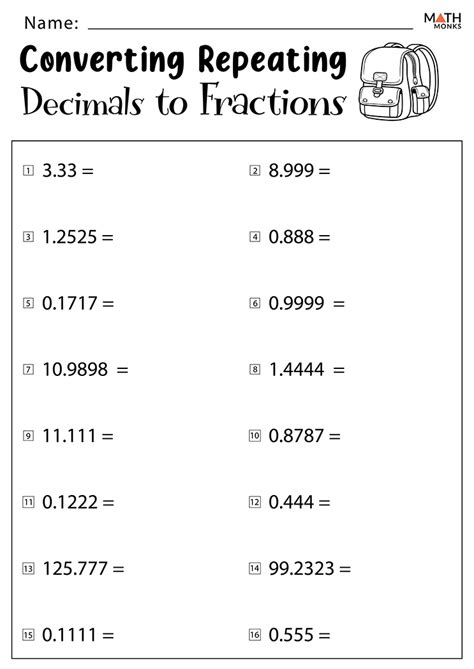 Converting Repeating Decimals To Fractions Worksheet
