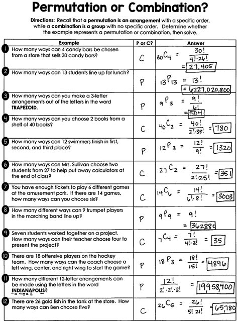 Counting Principle Permutations And Combinations Worksheet Answer Key