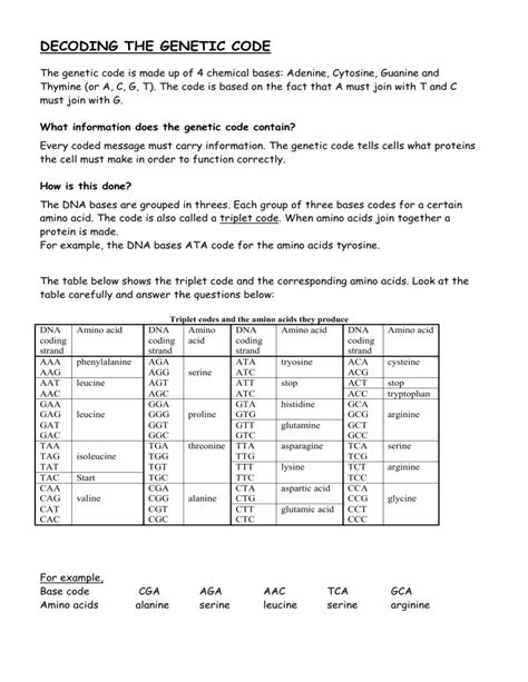 Worksheets Are The Genetic Code Activity, Decoding Dna Student Work, Mrna Codingdecoding Work, Decoding.